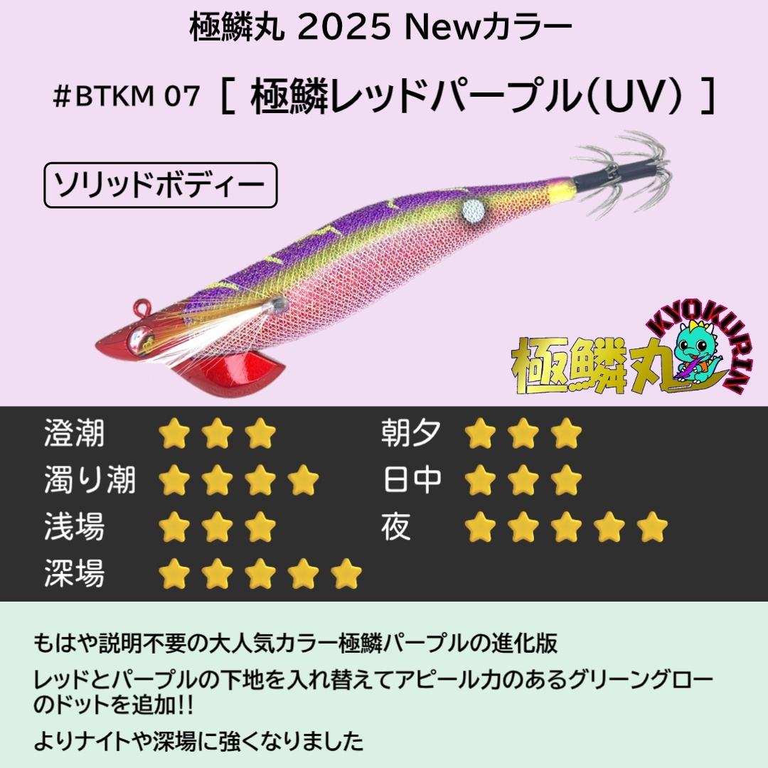 #BTKM07 極鱗レッドパープル(UV) 3.5号30g 極鱗丸オリカラ2025Newカラー SQUIDMANIA WILDCHASE/B-TR